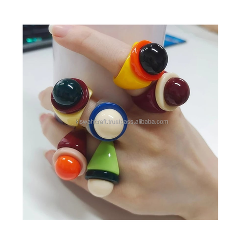 2024 Modieuze Sieraden Hip Pop Punk Hars Vintage Acryl Nieuw Ontwerp Chunky Opaal Vingerringen Voor Vrouwen En Meisjes