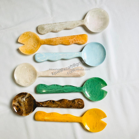 Nieuwste Ontwerp Saladeserverset Met Lange Hars Handvat Bruiloft Tafellepel En Vorkgereedschap
